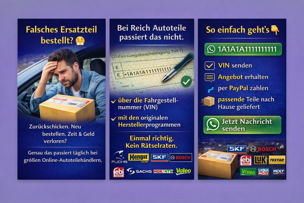 Schick uns die Fahrgestellnummer (VIN) und Deine Telefonnummer. Du bekommst von uns ein unverbindliches Angebot